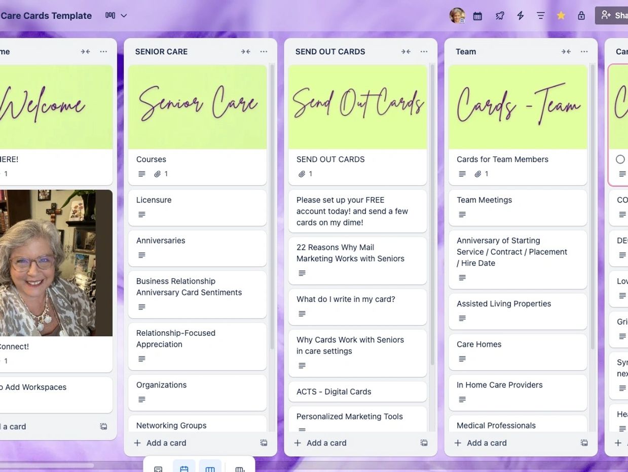 It’s a Trello-based marketing and outreach system created for senior care professionals. Whether you're just starting out or looking to refresh your client connection strategy, this template provides the words, workflows, and warmth you need to lead with care.